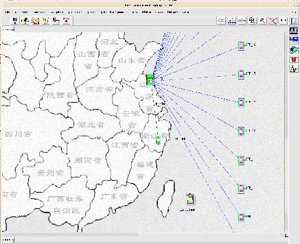●網(wǎng)絡(luò)結(jié)構(gòu)和網(wǎng)絡(luò)狀態(tài)總覽:按照網(wǎng)元地理位置提供直觀的網(wǎng)絡(luò)視圖,并通過顏色的變化和圖標(biāo)的閃爍表示網(wǎng)元的運行狀態(tài)和鏈路的負(fù)荷狀況;