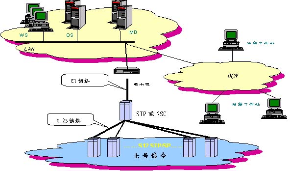 由于N7MS開發(fā)了多種類型的網(wǎng)元通信接口,如X.25,TCP/IP,RS232,加之系統(tǒng)采用分布式的模塊化設(shè)計,因此組網(wǎng)方式非常靈活。 能夠按照信令網(wǎng)絡(luò)和通信網(wǎng)絡(luò)的實際情況采用不同的組網(wǎng)方案來滿足用戶需要。
