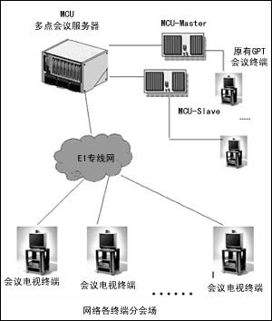 對用戶來說,本方案優(yōu)勢在于:保持原有網(wǎng)絡(luò)結(jié)構(gòu)不變,充分利用原有系統(tǒng)設(shè)備(包括MCU和終端);保持政府會議繼續(xù)采用專線網(wǎng)絡(luò),安全性、穩(wěn)定性高;使用E1/2M傳輸專線,保證會議的圖像和聲音質(zhì)量;該系統(tǒng)同時支持H.320/H.321/H.323協(xié)議,即可同時采用E1專線,ISDN撥號,IP網(wǎng)、ATM網(wǎng)等方式開會,將來能夠靈活、平滑擴展到各種系統(tǒng)中去,最大地保護(hù)了用戶的投資和資源。