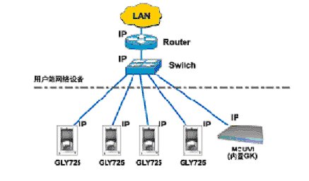在這幾個(gè)不同的辦公地點(diǎn)的會(huì)議室分別配置一臺(tái)視頻會(huì)議終端設(shè)備,在主會(huì)議室中再配置一臺(tái)多點(diǎn)控制單元MCU,即可實(shí)現(xiàn)商業(yè)用戶(hù)在同城的幾個(gè)辦公室之間進(jìn)行視頻通信。該方案的組網(wǎng)非常簡(jiǎn)單,不需要企業(yè)租用電信的線(xiàn)路,也不需要多購(gòu)買(mǎi)其他網(wǎng)絡(luò)設(shè)備,只需為每臺(tái)設(shè)備分配私有的IP地址,就能實(shí)現(xiàn)視頻通信。