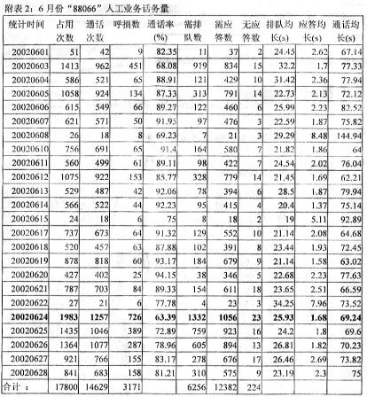 6月份"88066"人工業(yè)務話務量見附表2。
