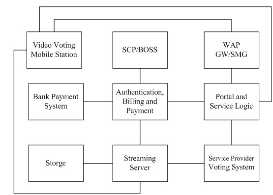 - 運(yùn)營商建設(shè)的提供移動(dòng)視頻投票業(yè)務(wù)的移動(dòng)流媒體平臺,該系統(tǒng)一方面可以接入電視信號向用戶即時(shí)播放音視頻賽況或搖珠過程,另一方面可以向用戶顯示賽況介紹和接收用戶的投票并進(jìn)行計(jì)費(fèi)處理。