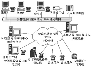 此方案使用后,以市為中心,可把周邊的各個縣、各個區(qū)聯(lián)成一個統(tǒng)一的148法律服務(wù)整體,各個縣、各個區(qū)的咨詢用戶只需要知道一個統(tǒng)一的148法律服務(wù)電話號碼,就可與最近的148法律服務(wù)臺接通進(jìn)行法律咨詢。