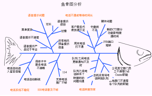 在整個質(zhì)量管理當(dāng)中,最關(guān)鍵的部分是在于第三步"改進(jìn)流程"。在很多管理優(yōu)秀的呼叫中心,流程定義得比較清楚,執(zhí)行得也還不錯,可是由于外部環(huán)境或業(yè)務(wù)的變化導(dǎo)致現(xiàn)在的流程不能很好地實(shí)現(xiàn)呼叫中心的目標(biāo),甚至如上述某管理人員一樣遇到各種新的問題。因此,TQM的著重點(diǎn)完全在于第三步:針對所遇問題如何改進(jìn)現(xiàn)有流程。