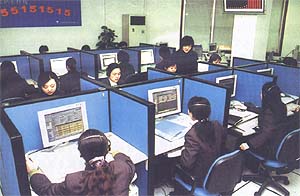 圖為經(jīng)過(guò)專(zhuān)業(yè)培訓(xùn)的客戶(hù)服務(wù)代表正在親切客戶(hù)來(lái)電