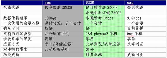 USSD可以提供比短消息更為復雜的無線業(yè)務,也就意味著業(yè)務的開發(fā)和部署更加復雜;贕SM的USSD技術(shù)的出現(xiàn)和成熟,解決了WAP方式交易成本高和SMS(短消息)方式無法實現(xiàn)業(yè)務交互流程、表達能力差的弱點,提供了面向連接的透明傳輸通道。