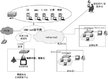 對于規(guī)模小的分公司,沿用原來的因特網(wǎng)專線, 作為視頻系統(tǒng)的接入。