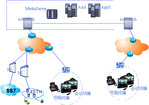該方案除了提供點(diǎn)對點(diǎn)可視業(yè)務(wù),還能充分利用軟交換設(shè)備的互通能力,可視終端可以和PSTN網(wǎng)絡(luò)進(jìn)行互通,以及和其它的IAD終端進(jìn)行互通,避免了單獨(dú)建立一個可視網(wǎng)絡(luò)而帶來的經(jīng)營風(fēng)險(xiǎn)。