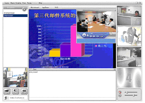 會(huì)議是政府和日常工作的重要組成部分。視頻會(huì)議是網(wǎng)絡(luò)時(shí)代出現(xiàn)的新型會(huì)議方式,它的數(shù)據(jù)和圖象傳送功能是傳統(tǒng)會(huì)議不可取代的。政府用戶希望能夠得到一種更為便宜和便捷的視頻會(huì)議產(chǎn)品或服務(wù),能夠提供多種功能,使他們的遠(yuǎn)程辦公和遠(yuǎn)程全功能會(huì)議得以實(shí)現(xiàn)。
