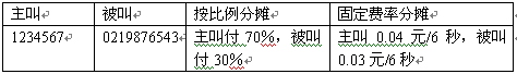 根據(jù)主叫用戶和被叫用戶之間的的關(guān)系,主叫用戶產(chǎn)生的通話費(fèi)由主叫和被叫協(xié)商好的原則共同承擔(dān)。例6。