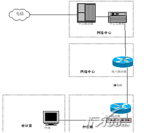 。。2M電路接入是目前電信網(wǎng)絡(luò)常用的一種接入方式。主要是基于目前電信的網(wǎng)絡(luò)環(huán)境,原有的電路交換網(wǎng)絡(luò)十分豐富,大部分地區(qū)都有光纖接入,部分較差地區(qū)也有銅線接入,因此大部分地方可以提供2M電路的接入方式。這樣在兩端分別增加一個(gè)接入路由器,根據(jù)電路提供的接口(如E1、V.35等),選擇不同的端口,可以分別接入到各地的局域網(wǎng)內(nèi),實(shí)現(xiàn)視頻會(huì)議的接入。路由器類(lèi)型可選性較多,此類(lèi)路由器屬于低端邊緣路由器,如CISCO、BINTEC、華為等廠家均有相應(yīng)的產(chǎn)品系列。