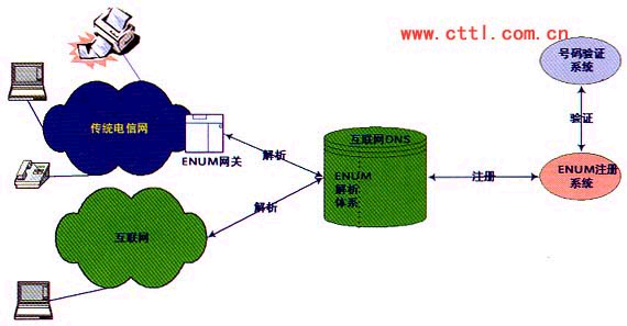 在ENUM機制中,利用DNS資源記錄存儲用戶的信息,支持用E.164號碼對用戶信息進行查詢,用戶可以方便地修改自己存儲在DNS系統(tǒng)中的信息,同時應用提供商可以利用這些信息為用戶提供一些增值業(yè)務。通過ENUM機制可以將電話號碼映射為電子郵件地址、傳真號碼、SIP電話地址等。目前,ENUM的最典型的應用就是通過惟一的E.164號碼接入多種應用,包括SIP話音、H.323話音、傳真、電子郵件等。ENUM基本上不會應用于純PSTN環(huán)境,它的潛在應用可能發(fā)生在PSTN和IP的互通以及純IP環(huán)境中。利用ENUM機制可提供的一些應用的例子包括:電話用戶用語音給IP網(wǎng)絡上的用戶發(fā)送電子郵件,用E.164號碼發(fā)送電子郵件和即時消息,用E.164號碼標識互聯(lián)網(wǎng)資源,例如Web或FTP站點。