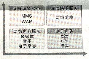 其中,互聯(lián)網(wǎng)及增值業(yè)務(wù)包括兩部分,核心業(yè)務(wù)主要是即時(shí)通信服務(wù),包括傳輸文本信息、圖像、視頻、音頻以及會(huì)員服務(wù)、號(hào)碼服務(wù)、電子郵件等;另外還有娛樂(lè)資訊門戶的建設(shè),包括向用戶提供新聞、體育、娛樂(lè)等多類資訊,還包括游戲中心、交友中心、校友錄、電子賀卡等多種娛樂(lè)服務(wù)。