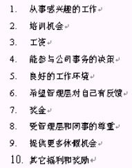 在對員工關(guān)心的十個指標的調(diào)研、統(tǒng)計分析后發(fā)現(xiàn),在企業(yè)提供良好的培訓體系前提下,人員的流失與企業(yè)提供的薪酬有必然的關(guān)系。各因素影響程度由高到低排序如下: