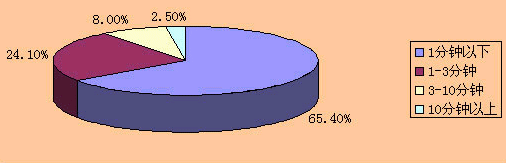 “彩話”業(yè)務(wù)主要應(yīng)用是主叫方為了通話中的和諧溝通而設(shè)置的,因此它與通話時長具有正相關(guān)性,一般短暫的工作式或通知式的通話無須主叫方設(shè)置背景音效。根據(jù)信息產(chǎn)業(yè)部提供的《電信資費聽證會資料》,國家統(tǒng)計局對全國24個大、中、小城市電話用戶通話時長進(jìn)行了調(diào)查,調(diào)查結(jié)果見圖1所示。