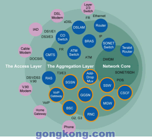 ATCA正在被廣泛應(yīng)用于無線網(wǎng),見圖2中橙色園環(huán)部分,這是由市場對成本效益,快速部署方案的需求驅(qū)動的。服務(wù)提供商和TEM均認(rèn)識到:用戶愿意為3G網(wǎng)絡(luò)的先進(jìn)功能所付出的只能是少量的附加費,因此從2G/2.5G向3G轉(zhuǎn)換必須以盡可能低的成本和盡可能靈活的方案來實施,許多TEM已經(jīng)將ATCA看成滿足快速發(fā)展的無線市場需求的唯一技術(shù)。若基于雙星千兆以太網(wǎng)交換互連,ATCA的性能已經(jīng)很好的滿足無線網(wǎng)要求,因為這些網(wǎng)絡(luò)實質(zhì)上是低帶寬而高運算密度的網(wǎng)絡(luò),對于實時敏感的語音應(yīng)用而言,千兆以太網(wǎng)的高速度已經(jīng)消除了延遲的問題。
