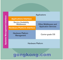 單靠硬件標(biāo)準(zhǔn)本身并不足以提供電信業(yè)要求的競爭優(yōu)勢和成本優(yōu)勢,新的軟件標(biāo)準(zhǔn)正在研發(fā)之中以補(bǔ)充ATCA硬件標(biāo)準(zhǔn),服務(wù)可用性論壇(SA Forum)是一個由世界領(lǐng)先的通信和計算機(jī)公司組成的組織,致力于共同開發(fā)和頒布針對高可用性和系統(tǒng)管理的軟件接口規(guī)范,并且積極推動這些規(guī)范在行業(yè)中被采用,目前已經(jīng)頒發(fā)或正在開發(fā)的標(biāo)準(zhǔn)包括: