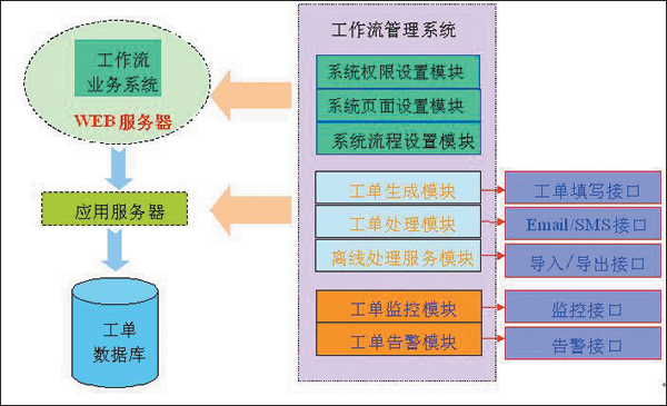 第三部分是工作流業(yè)務系統(tǒng),提供工作流系統(tǒng)的各項處理功能,包括復核、派單、處理、反饋、查詢等功能。該系統(tǒng)運行在Web服務器上,最終用戶只需要在瀏覽器上輸入該工作流業(yè)務系統(tǒng)的網(wǎng)址就可以使用該系統(tǒng)。