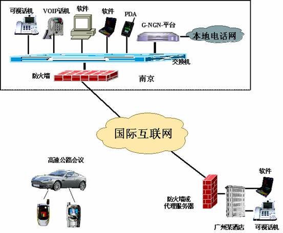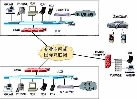 G-NGN-Softswitch產(chǎn)品可以使集團(tuán)用戶通過租用網(wǎng)絡(luò)運(yùn)營商的寬帶線路,或者直接借助國際互聯(lián)網(wǎng)組建成連接全市、全省乃至全國的集團(tuán)內(nèi)部網(wǎng)絡(luò)電話,可以提供可視話機(jī)、非可視話機(jī)、客戶端軟件、PDA等多種便捷方式實(shí)現(xiàn)集團(tuán)內(nèi)部的可視或非可視通訊。