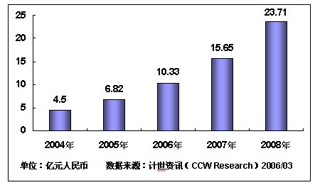 Research)數(shù)據(jù)表明,2005年,我國移動政務(wù)市場規(guī)模達(dá)6.82億元,增長率為51.6%,預(yù)計2006年,我國移動政務(wù)市場規(guī)模將達(dá)到10.33億元,預(yù)計未來三年內(nèi),中國移動政務(wù)復(fù)合增長率將達(dá)到51.5%,截至2008年,我國移動政務(wù)市場規(guī)模將突破20億元。