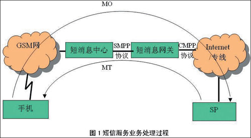 用戶收短信業(yè)務(即MT業(yè)務,如短信群發(fā)等):提供此項業(yè)務的SP將短信內容以CMPP協議發(fā)給連接的短信網關,由短信網關根據用戶手機號段以SMPP協議發(fā)給用戶所屬的短信中心;