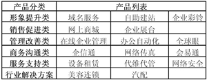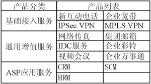 表1 中國網(wǎng)通“寬帶商務”主要產(chǎn)品
