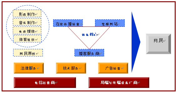 對于互聯(lián)網(wǎng)來講,網(wǎng)絡(luò)視頻代表網(wǎng)絡(luò)內(nèi)容展現(xiàn)形式的變革,而這種變革將帶動一個產(chǎn)業(yè)鏈條的發(fā)展,同時產(chǎn)業(yè)鏈條各個環(huán)節(jié)也會反過來制約網(wǎng)絡(luò)視頻的發(fā)展。2006年以前的中國網(wǎng)絡(luò)視頻發(fā)展處于一個初級階段,聚集網(wǎng)民注意力,形成網(wǎng)民對網(wǎng)絡(luò)視頻內(nèi)容的瀏覽習慣是這個階段網(wǎng)絡(luò)視頻發(fā)展的核心。但是因為商業(yè)模式的不成熟,網(wǎng)絡(luò)視頻盈利能力弱的基本原因,產(chǎn)業(yè)鏈條中的多個環(huán)節(jié)都成了抑制網(wǎng)絡(luò)視頻發(fā)展的因素。例如:寬頻形式對網(wǎng)絡(luò)資源的要求一方面加大了寬頻內(nèi)容運營的成本,另一方面對網(wǎng)民終端的網(wǎng)絡(luò)條件要求也明顯高于以前的網(wǎng)絡(luò)條件,而這些問題要求電信運營商既要降低基礎(chǔ)網(wǎng)絡(luò)資源的價格又要提高網(wǎng)絡(luò)資源的質(zhì)量,這些工作和讓步短時間內(nèi)電信運營商很難完成,寬頻內(nèi)容運營商的運營成本就保持居高不下而網(wǎng)民的網(wǎng)絡(luò)視頻效果就差強人意了。像這樣充滿著矛盾因素的抑制環(huán)節(jié)在整個產(chǎn)業(yè)鏈條中還有很多,因此2006年以前的中國網(wǎng)絡(luò)視頻發(fā)展沒有突破產(chǎn)業(yè)束縛進入發(fā)展的快車道。