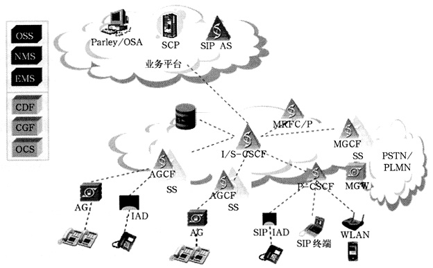 業(yè)務(wù)層包括下面的元素:PSTN/ISDN模擬子系統(tǒng)(PSS)即IMS核心子系統(tǒng)、PSTN/ISDN仿真子系統(tǒng)(PES)、其他多媒體子系統(tǒng)(如流媒體子系統(tǒng)、內(nèi)容多播子系統(tǒng)等)和應(yīng)用以及可以用于多個子系統(tǒng)的公共元素(如接入應(yīng)用、計(jì)費(fèi)功能、用戶屬性管理、安全管理和路由管理等);傳送層為用戶終端提供了基本的IP連接的能力,其中的網(wǎng)絡(luò)附屬子系統(tǒng)(NASS)和資源認(rèn)證控制子系統(tǒng)(RACS)屏蔽了IP層以下的接入網(wǎng)/核心網(wǎng)所使用的傳送技術(shù),給固網(wǎng)NGN用戶終端提供了IP的連續(xù)性。