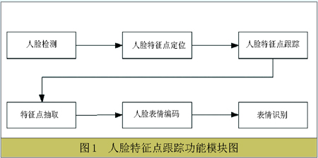 該模塊首先進(jìn)行人臉檢測,對眼角、嘴角等特征點進(jìn)行粗略定位,然后根據(jù)小波變換進(jìn)行精細(xì)定位,最終得到較為精細(xì)的人臉表情參數(shù)初始值。之后運用Lucas-Kanade算法進(jìn)行特征點的跟蹤,利用跟蹤得到的特征點位置首先根據(jù)Ekman的人臉表情編碼規(guī)則進(jìn)行編碼,然后根據(jù)所得到的編碼結(jié)果進(jìn)行表情識別。該系統(tǒng)不僅實現(xiàn)了全自動的特征點定位和跟蹤,而且根據(jù)人臉特征點的分布模型,可以對跟蹤時特征點的丟失現(xiàn)象進(jìn)行補償。