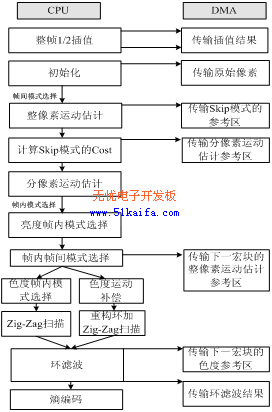 DSP嵌入式程序受硬件資源的限制,對(duì)程序流程和數(shù)據(jù)組織需要從硬件資源和代碼運(yùn)行效率上做仔細(xì)的考慮。通過(guò)分析AVS-M編碼器的程序流程,借助實(shí)驗(yàn)中積累的經(jīng)驗(yàn),本文給出了AVS-M編碼器的優(yōu)化方案,主要介紹Cache性能優(yōu)化、存儲(chǔ)空間的分配以及CPU與DMA的并行性設(shè)計(jì)等。