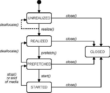 MMAPI使用Player來(lái)處理媒體數(shù)據(jù)內(nèi)容。一個(gè)Player是javax.microedition.media.Player接口的一個(gè)實(shí)現(xiàn)實(shí)例,它從Data