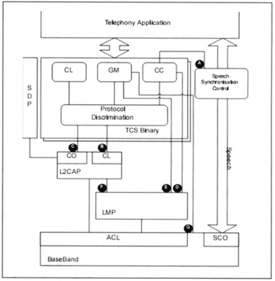 。3)CO(Connection)接口利用點(diǎn)對(duì)點(diǎn)信令發(fā)送TCS消息給L2CAP,以便在面向連接的信道上傳輸。