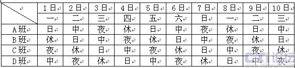 24小時的倒班時間,根據(jù)勞動法規(guī)定,可把人員分出4個班組4個時段進(jìn)行倒班,這個四班三運轉(zhuǎn)的倒班方式有兩個: