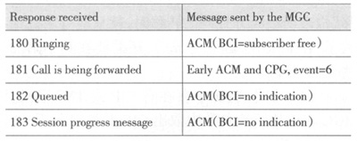 表2 18x響應(yīng)消息的映射(MGC已發(fā)送ACM消息)