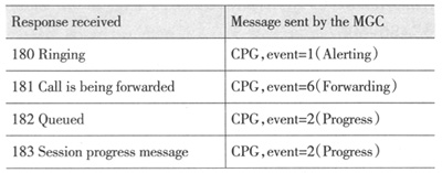 (6)發(fā)出ACM消息后,所有的臨時消息將被翻譯成ISUP CPG消息;