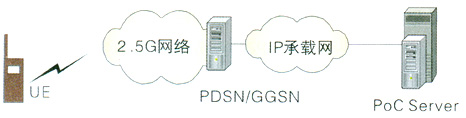 PS方案指直接在GPRS或CDMA 1X核心網(wǎng)絡(luò)上增加PoC服務(wù)器來實(shí)現(xiàn)PoC業(yè)務(wù);這種方案是國(guó)際標(biāo)準(zhǔn)發(fā)布之前的普遍方案。該方案結(jié)構(gòu)簡(jiǎn)單,成本低,PoC服務(wù)器直接與GGSN/PDSN相連,負(fù)責(zé)PoC業(yè)務(wù)的提供,其網(wǎng)絡(luò)結(jié)構(gòu)如圖3所示: