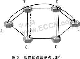 Switching Path)建立的信令過程。當(dāng)入口標(biāo)記交換路由器(LSR:Label Switching Router)A接收到一個(gè)業(yè)務(wù)請求后,它根據(jù)路由控制模塊計(jì)算出來的路由填寫顯示路由對象(ERO:Explicit