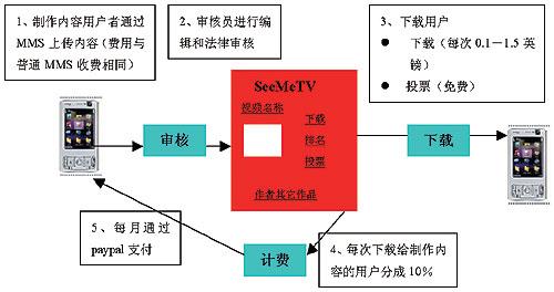 M1新加坡移動(dòng)運(yùn)營商M1推出了用戶制作及共享視頻業(yè)務(wù)——MeTV,用戶可以通過MMS上傳視頻內(nèi)容,其它用戶可以瀏覽并下載。這項(xiàng)業(yè)務(wù)為用戶提供了一個(gè)展示自己和了解他人的平臺(tái)。這個(gè)業(yè)務(wù)也建立了與用戶分成的模式,用戶可以從自己上傳的內(nèi)容中獲得利潤。用戶上傳的視頻內(nèi)容,被他人下載一次,用戶就可以獲得0.05新元。自從2007年3月該業(yè)務(wù)推出以來,已經(jīng)有超過4萬名用戶,收入最高的用戶已經(jīng)達(dá)到50~100新元。