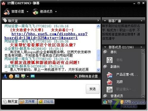 在群聊的過(guò)程中兩款軟件都各特色。百度Hi的特色是當(dāng)用戶向群中一個(gè)不是自己好友的人發(fā)送信息時(shí),該用戶會(huì)在百度網(wǎng)頁(yè)短信息中可以收到消息,此項(xiàng)功能十分適合上班時(shí)不能打開聊天軟件的朋友使用。Lava則是將群功能體現(xiàn)的更加強(qiáng)大些,除了消息發(fā)送外可以建立屬于群部落的文件庫(kù),就是這個(gè)部落的藏寶室,有什么好東東都可以放進(jìn)去,簡(jiǎn)直就是超大的網(wǎng)絡(luò)硬盤。(圖9、圖10)