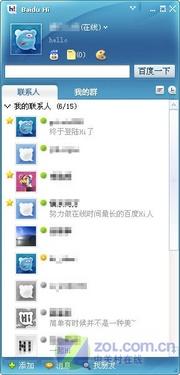 登陸以后進(jìn)入主界面,百度Hi顯得略微清爽簡(jiǎn)單一些,符合百度“簡(jiǎn)單可依賴”的風(fēng)格。