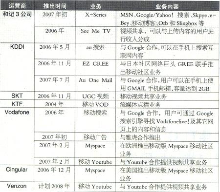 全球主要移動(dòng)運(yùn)營(yíng)商推出的新型移動(dòng)互聯(lián)網(wǎng)業(yè)務(wù)