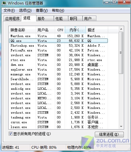 最后我們來看看大家都很關心的系統(tǒng)資源占用情況。沒有比較就沒有優(yōu)劣,大家從任務管理器的截圖就可以看出飛信、QQ、MSN這三款主流聊天軟件占用的系統(tǒng)資源多少了(如圖12)。