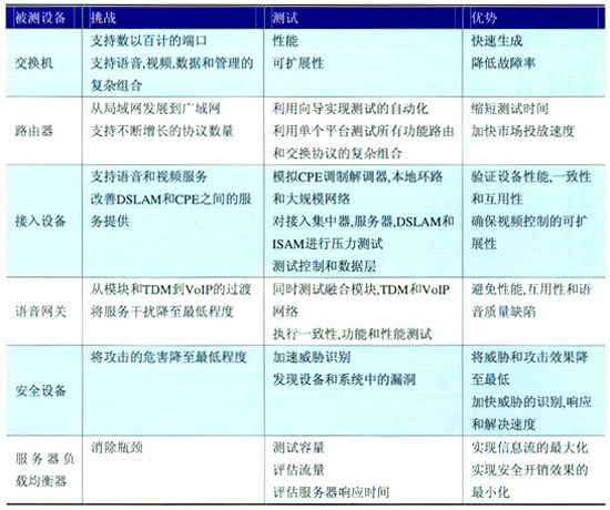 此外,思博倫還可以提供安全風(fēng)險管理解決方案。服務(wù)商和網(wǎng)絡(luò)設(shè)備制造商可以生成真實的流量,并將其引入網(wǎng)絡(luò)中,然后監(jiān)視各種“惡意代碼”對單個設(shè)備和總體網(wǎng)絡(luò)性能造成的影響,從而對網(wǎng)絡(luò)和設(shè)備中可能存在的漏洞進(jìn)行周全的測試。表1為思博倫基礎(chǔ)設(shè)施測試的挑戰(zhàn)和優(yōu)勢。