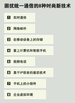 在最近由調(diào)查機構(gòu)Yankee Groupe針對企業(yè)用戶進行的一項關(guān)于當(dāng)前一些最時尚新技術(shù)應(yīng)用狀況的調(diào)查中,受訪的500名被調(diào)查者中有86%承認,在工作場所,他們不止一次地使用了被調(diào)查的8種“時尚新技術(shù)”中的一種或幾種。這些設(shè)備和技術(shù)在其應(yīng)用部署的目標(biāo)上,一方面是出于業(yè)務(wù)創(chuàng)新的需求,另一方面則是出于對提升現(xiàn)有生產(chǎn)效率的考慮。