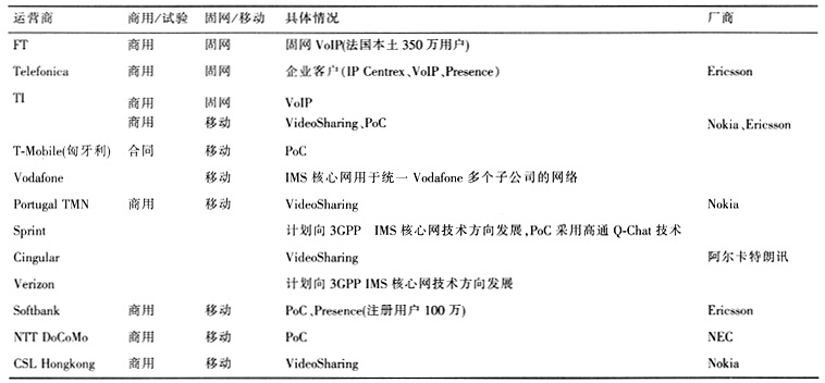 業(yè)務方面,隨著各主流運營商的積極引入和探索,各種不同的業(yè)務組合頻頻試水移動和固網(wǎng)市場,獲得廣泛關(guān)注,其中以PoC、移動視頻共享、即時通信以及固網(wǎng)VoIP等最為引人注目。作為較早面市的移動IMS服務之一,PoC、移動視頻共享已經(jīng)商用,其他如Presence、固網(wǎng)VoIP等業(yè)務也取得了很好的發(fā)展。