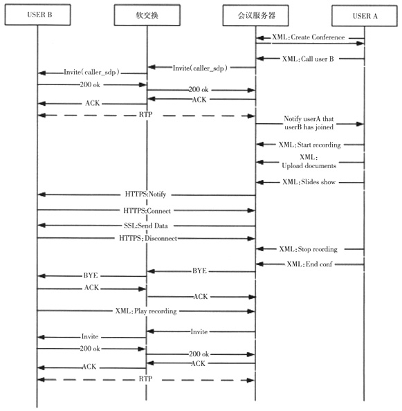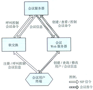 基于上述的分層開放系統(tǒng)架構(gòu),通過(guò)各層設(shè)備之間的相互配合實(shí)現(xiàn)了多媒體會(huì)議業(yè)務(wù)的應(yīng)用。