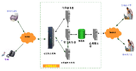 - 數(shù)據(jù)庫服務(wù)器(2臺(tái),1U,利舊): 連接到公網(wǎng)/內(nèi)網(wǎng)上。儲(chǔ)存所有傳真、語音業(yè)務(wù)的數(shù)據(jù)。