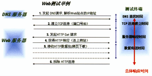 在用戶對無線數(shù)據(jù)業(yè)務(wù)的訪問過程中,通常會包含多個階段(業(yè)務(wù)處理過程)。如當用戶在使用手機要瀏覽網(wǎng)頁的時候,先輸入網(wǎng)頁的地址,然后按手機上的“訪問”按鈕,一段時間后手機的屏幕上就會顯示出要瀏覽的網(wǎng)頁頁面。看似簡單的過程,其實這里面包含了以下幾個步驟:DNS查找時間、TCP連接時間、服務(wù)器響應(yīng)時間和數(shù)據(jù)下載時間。在這中間,只要任何一步出了問題,如DNS解析時間過長、TCP連接建立時間過長、應(yīng)用服務(wù)器負載過重、網(wǎng)絡(luò)可用信道資源少而造成數(shù)據(jù)下載慢,都可能會造成頁面下載失敗。因此,為了能準確地定位造成用戶對Web服務(wù)質(zhì)量感知度差的原因,我們就需要得到各階段的性能參數(shù),這樣才能快速地進行相關(guān)服務(wù)器和網(wǎng)絡(luò)的故障查找并解決問題。
