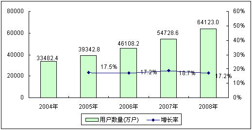 中國移動通信產(chǎn)業(yè)發(fā)展可以追溯到1987年,當(dāng)時中國確定了以TACS制式作為模擬制式蜂窩移動電話的標(biāo)準(zhǔn),首次為中國移動通信技術(shù)產(chǎn)業(yè)化發(fā)展奠定了基礎(chǔ)。隨著通信技術(shù)的進步,數(shù)字化的GSM移動通信網(wǎng)絡(luò)制式快速取代了原有的TACS制式。進入2000年以后,伴隨中國改革開放的深入和經(jīng)濟的進一步轉(zhuǎn)型,移動通信技術(shù)得到迅猛發(fā)展,手機普及率得到迅速提高。2004~2008年,中國移動電話用戶數(shù)量每年都保持著17%以上的快速增長,截止到2008年底,中國移動電話用戶數(shù)量已經(jīng)達(dá)到6.41億戶,與2004年相比增長了近一倍。