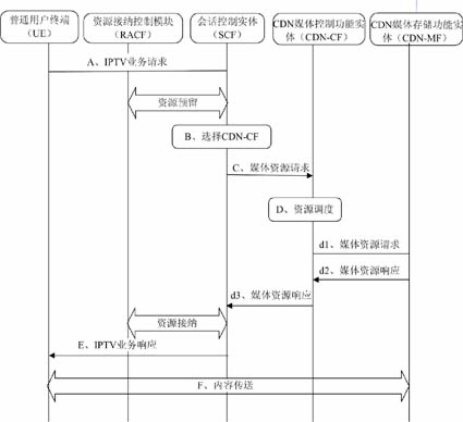 。5)CDN媒體存儲(chǔ)功能實(shí)體(CDN-MF):負(fù)責(zé)向IPTV業(yè)務(wù)用戶(hù)傳送媒體內(nèi)容。
